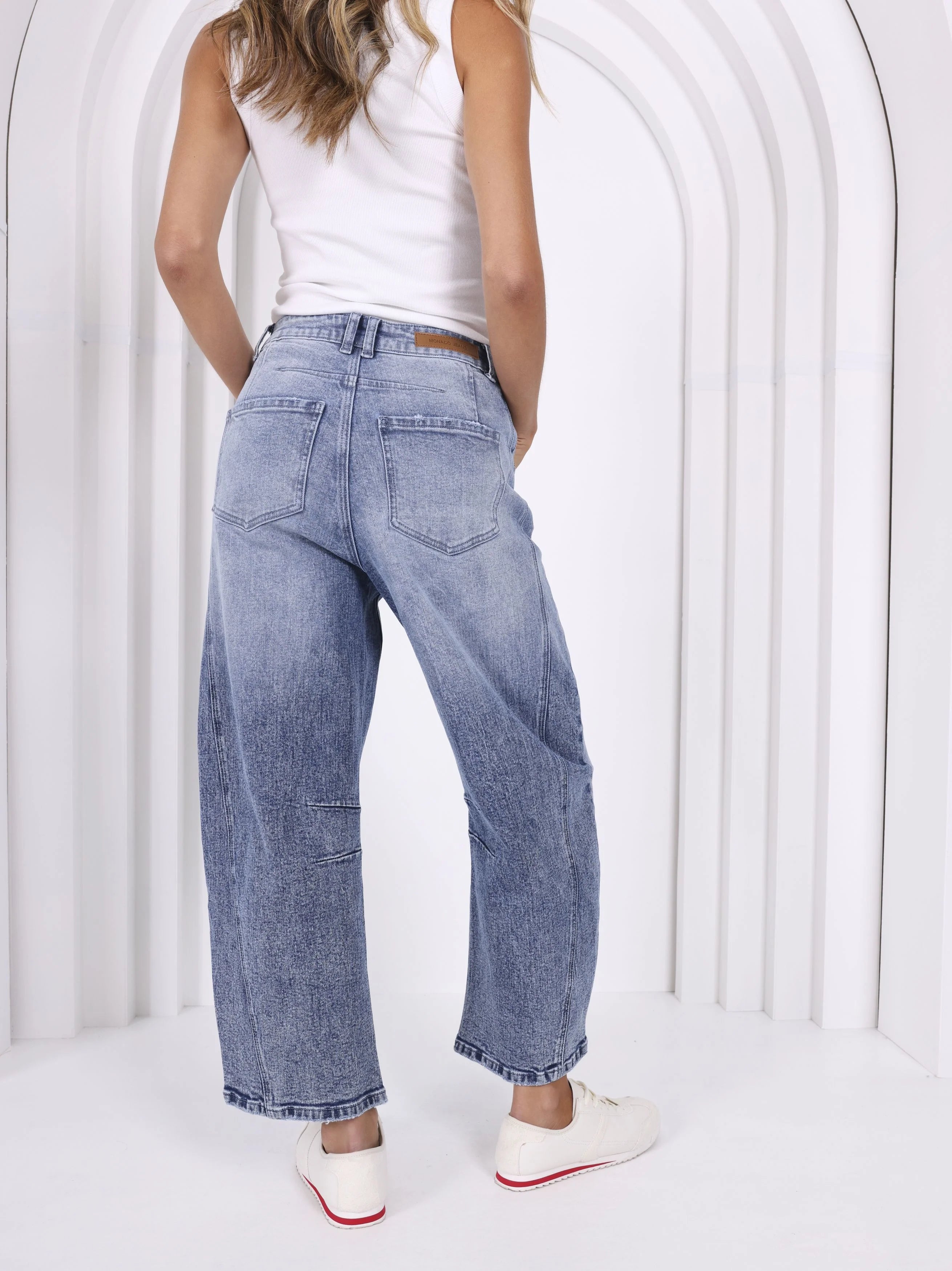 New Theo Barrel Jeans! Monaco have done it again in another cool pair of Barrel Leg Jeans! Characteristics of Theo Barrel-Leg Jeans include a fitted waist, flared-out shape around the mid-leg, and tapered silhouette at the bottom, which exudes the look of, well, a barrel. It's the vibe of a chic relaxed urban cool vibe that we love!