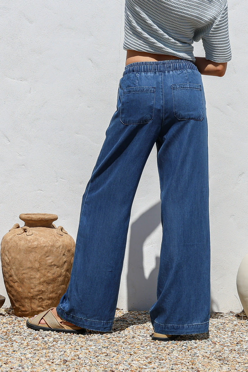 Greta Wide Leg Pant - Dark Blue