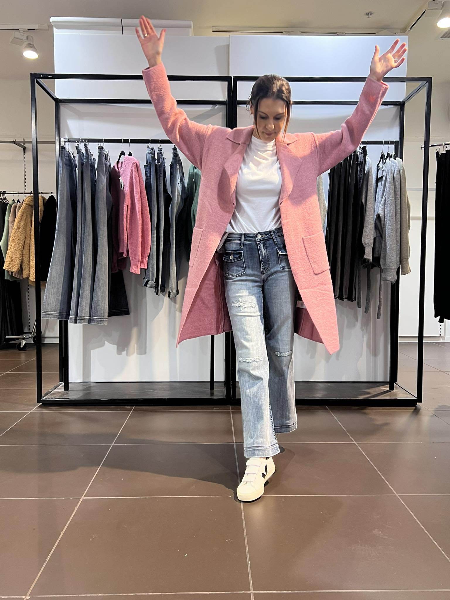 Say Hello to Pia! We have found you the perfect coatigan! So soft, snugly & warm & drapes so well on the body! The moment you put it on - you will fall in love! Gorgeous pink cardigan/coat that is 35% Wool! You will not believe how good this is! You will love this so much - you will want one in every colour!