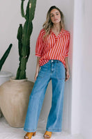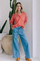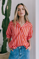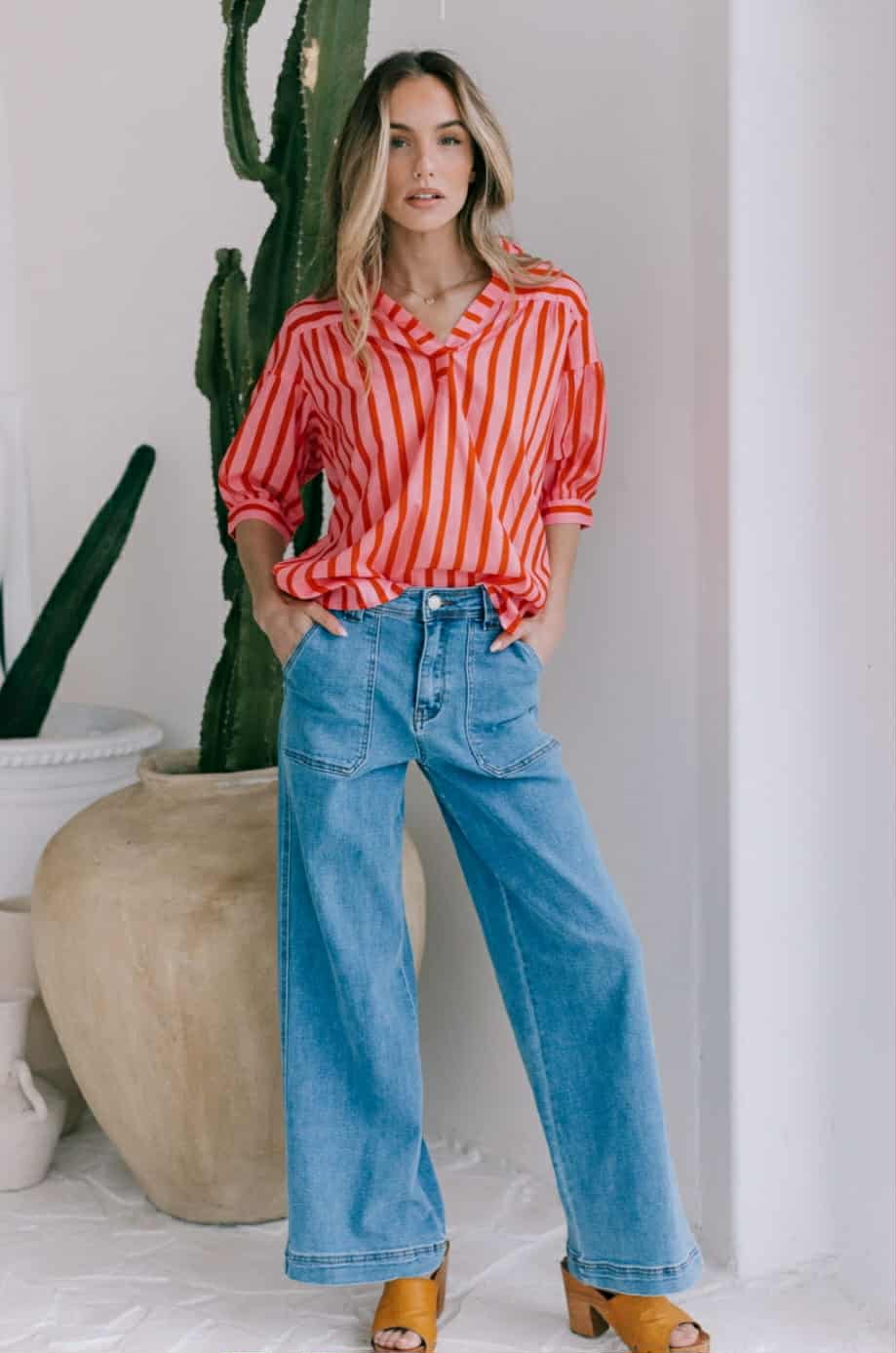 Gorgeous bold stripe top from beautiful label White Poetry. Love a statement fabric & this top ticks all the right boxes. Super soft luxe 100% cotton fabrication with v neck, button cuff to sleeve cuffs, & we love that it comes with a pink cami underneath. Feels so good on & we love that it can be dressed up or down with denim or a pant!