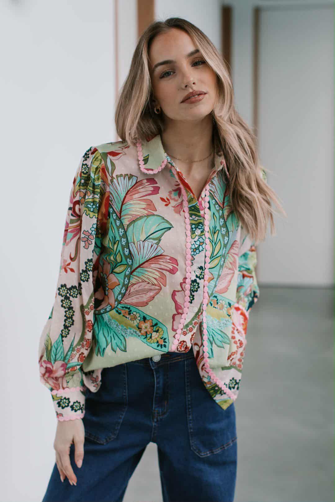 St Tropez Cotton Dobbie Shirt - Pink Green Multi