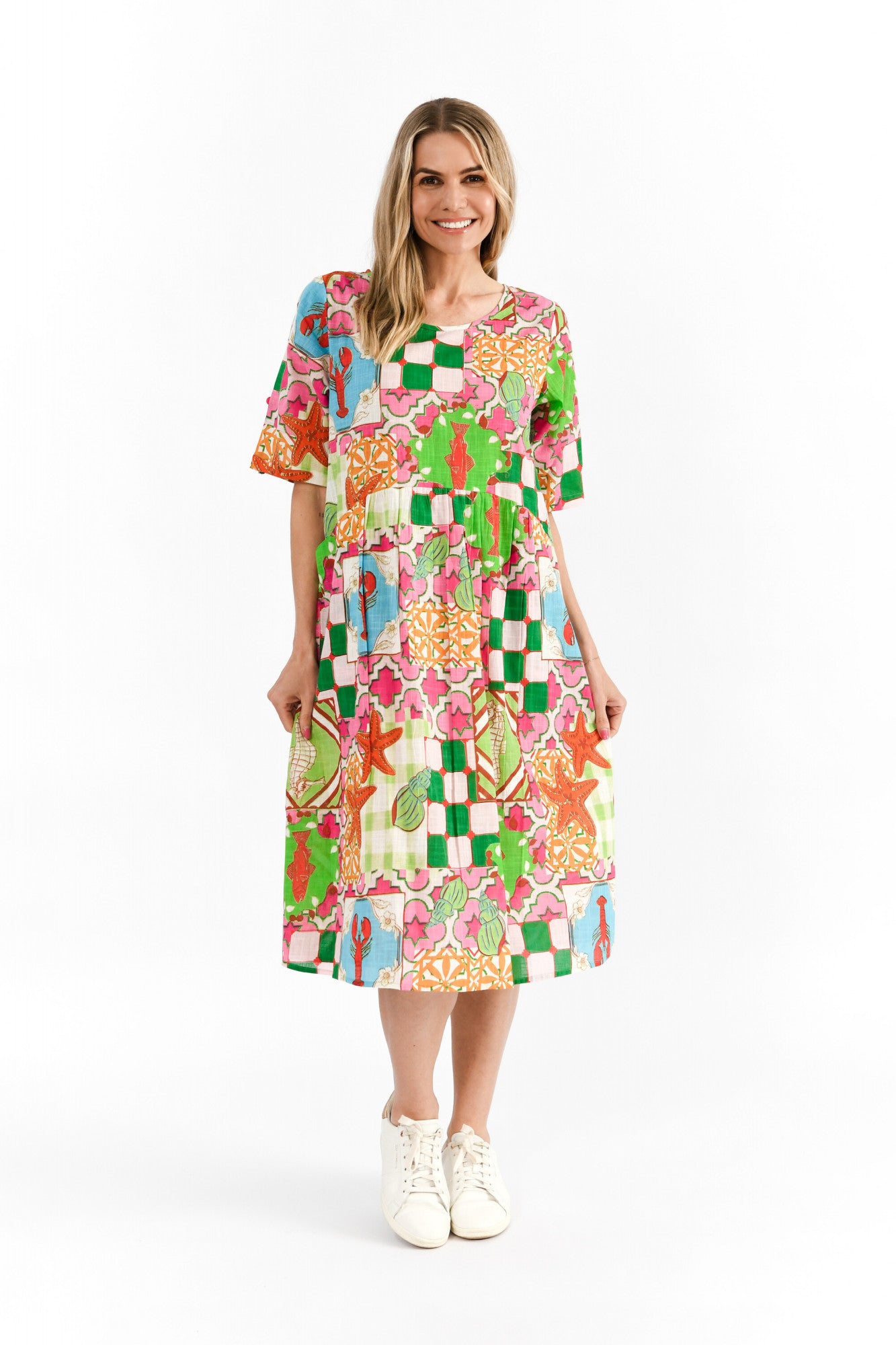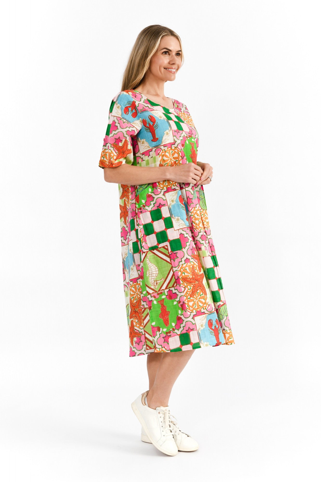 Selaron Reversible Short Sleeve Dress - Multi Prints