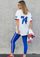 New Hammill Sport mesh tee brings a classic athletic feel, featuring bold collegiate letters and contrast stripe trims that give it that vintage game-day energy. Lightweight, breathable textured mesh with front Hammill Spot and 74 print on the back.