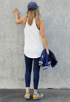 Sporty rib tank with Hammill Sport on the front. Longer length which is great for layering or wearing back with leggings.
