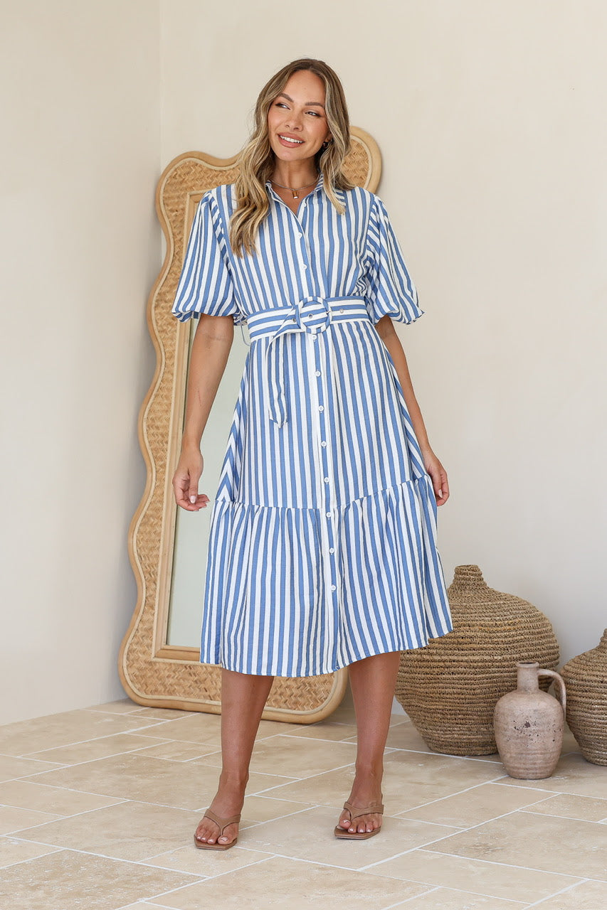 Betsy Belted Midi Dress - Blue