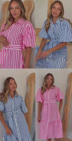 Make a statement in this gorgeous new Betsy Belted Midi Dress. The fabric in this dress is super luxe & feels so good on. Smart button front dress with collar & the cutest puff sleeves. Vertical stripes making this dress so flattering on. Can be worn with or without the belt - you choose - but she just looks so fabulous on! Perfect for day or night - shopping, summer BBQs, race days, parties or dressed down with a slide or sandal - she is perfect in so many ways!