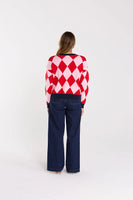A true gem. This 100% Cotton Knit is crafted in a warm weight with a diamond knit texture and contrast rib for a playful touch. Cosy, fun, and an instant favourite.