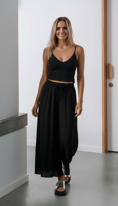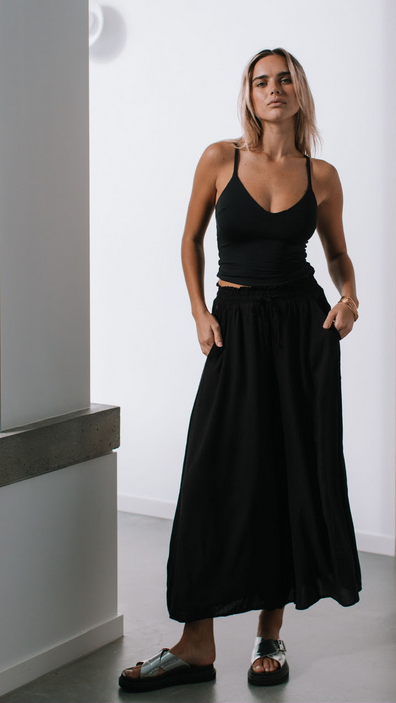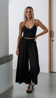 Rachel Shirred Waist Wide Leg Pant - Black