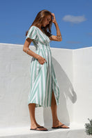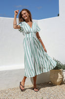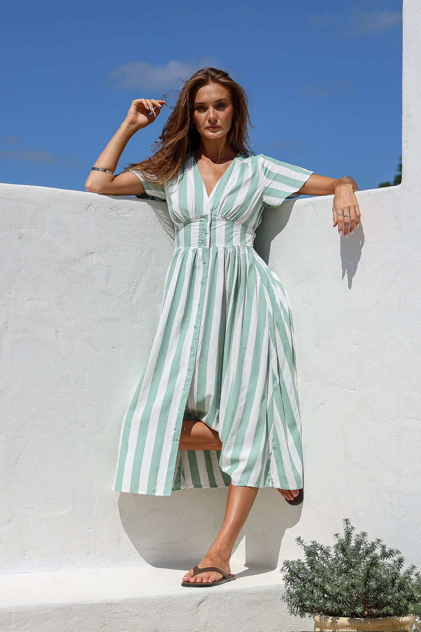 Stripe Button Front Dress - Sage Stripe